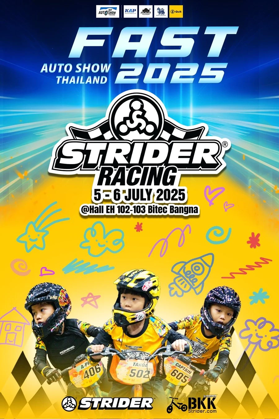 ด้าน นายอโณทัย เอี่ยมลำเนา รองประธานจัดงาน ซึ่งดูแลด้านกิจกรรมในงานได้ให้ข้อมูลว่า นอกเหนือจากรถโชว์แล้ว “ฟาสต์ ออโต โชว์ ไทยแลนด์ 2025” ได้จัดสรรพื้นที่โดยคำนึงถึงบรรยากาศแห่งความสุขของผู้ที่เข้ามาชมงาน อาทิ โซนรถตกแต่งพิเศษ สวย เท่ คูล ใช้งานได้จริง เพื่อสร้างแรงบันดาลใจสำหรับผู้ใช้รถรุ่นใหม่ที่ต้องการสไตล์เป็นของตัวเอง ส่วนไฮไลท์ปีนี้ คือ Fast Auto Show ได้ร่วมกับ Strider Thailand จัดการแข่งขัน Strider Racing @Fast Auto Show Thailand 2025 สนามใหม่เพื่อการแข่งขันสุดมันส์สำหรับนักปั่นตัวน้อย เชิญชวนเหล่านักซิ่งรุ่นเยาว์ อายุ 2 - 4 ปี ลงสมัครประลองความสามารถทั้งแบบปั่นและแบบไถ รวม 14 รุ่น ชิงรางวัลมากมาย มาร่วมลุ้นและเชียร์กันในวันเสาร์ที่ 5 และวันอาทิตย์ที่ 6 กรกฎาคม 2568 ตั้งแต่ 10.00 - 17.00 น. สนใจสมัครและติดตามรายละเอียดได้ที่นี่