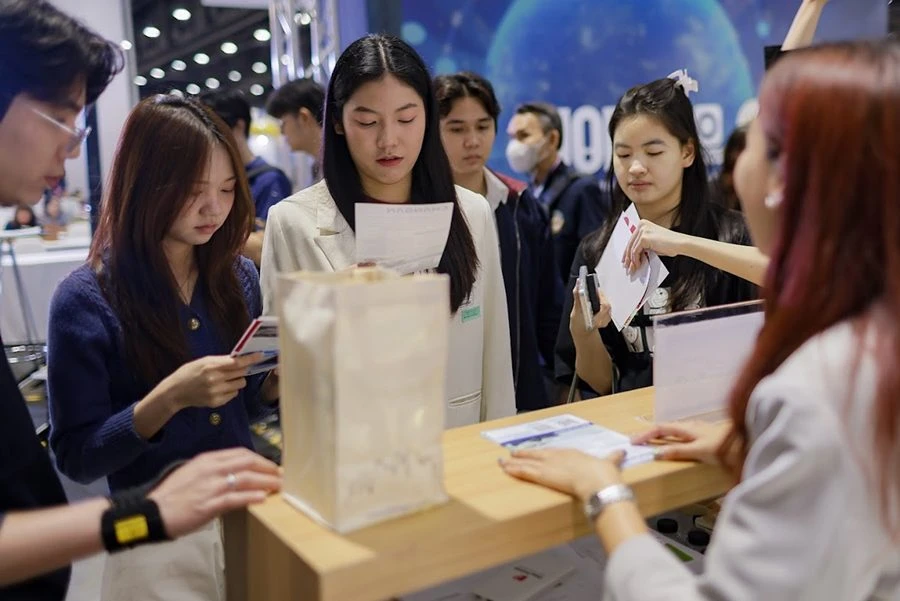 นายอู๋ เสี่ยวคัง (ที่ 4 จากซ้าย) รองประธานบริหารฝ่ายบุคคล บริษัท ฉางอาน ออโต้ เซลส์ (ประเทศไทย) จำกัด ต้อนรับ นายพิพัฒน์ รัชกิจประการ รัฐมนตรีว่าการกระทรวงแรงงาน (ที่ 5 จากซ้าย) พร้อมด้วย นายบุญสงค์ ทัพชัยยุทธ์ ปลัดกระทรวงแรงงาน (ที่ 6 จากซ้าย) และนายสมชาย มรกตศรีวรรณ อธิบดีกรมการจัดหางาน (ที่ 3 จากซ้าย) ณ บูธจัดแสดงและรับสมัครบุคลากร ในงาน JOB EXPO THAILAND 2025