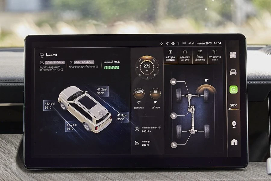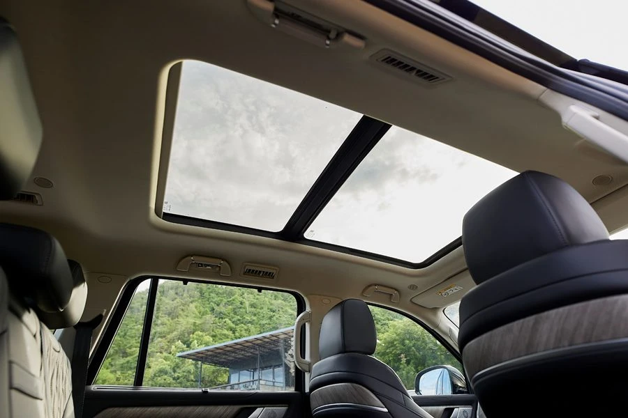 พร้อมด้วย ซันรูฟพาโนรามา ที่ช่วยเติมเต็มความโปร่งสบายให้ห้องโดยสาร นอกจากนี้ เทคโนโลยีความบันเทิงภายในรถได้รับการออกแบบให้ทันสมัยด้วยหน้าจอสัมผัสที่รองรับมัลติมีเดียได้อย่างครบครัน พร้อมระบบเสียงรอบทิศทางที่มีลำโพงถึง 12 ตำแหน่ง (รุ่น PRO 8 ตำแหน่ง) เพื่อมอบประสบการณ์การฟังที่สมจริงและเต็มอิ่ม ห้องโดยสารยังมีระบบปรับอากาศด้านหน้าแบบแยกอิสระซ้าย-ขวา และระบบปรับอากาศด้านหลัง พร้อมด้วยระบบกรองอากาศ N95 และ ระบบ ionizer ที่ช่วยฟอกอากาศและสร้างบรรยากาศที่สดชื่นภายในรถ เพิ่มความสะดวกสบายอีกระดับด้วยม่านบังแดดสำหรับผู้โดยสารด้านหลัง เพื่อเพิ่มความเป็นส่วนตัวให้กับผู้โดยสาร