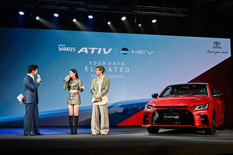 มร. โนริอากิ ยามาชิตะ กรรมการผู้จัดการใหญ่ บริษัท โตโยต้า มอเตอร์ ประเทศไทย จำกัด พร้อมด้วย มร. คาซุฮิโกะ โยชิโอกะ ผู้จัดการโครงการพัฒนาผลิตภัณฑ์ YAR IS ATIV และ นายศุภกร รัตนวราหะ รองกรรมการผู้จัดการใหญ่ บริษัท โตโยต้า มอเตอร์ ประเทศไทย จำกัด ร่วมแถลงข่าวการเปิดตัว NEW YARIS ATIV HEV รถยนต์ซับคอมแพคซีดานรุ่นยอดนิยมในประเทศไทยของโตโยต้า กับขุมพลังเครื่องยนต์ไฮบริด ที่จะมาเติมเต็มตลาดรถยนต์ในกลุ่มอีโคเซกเมนต์กับ 2 รุ่นย่อย ได้แก่ รุ่น HEV Premium และเร้าใจขึ้นอีกระดับกับ รุ่น HEV GR Sport