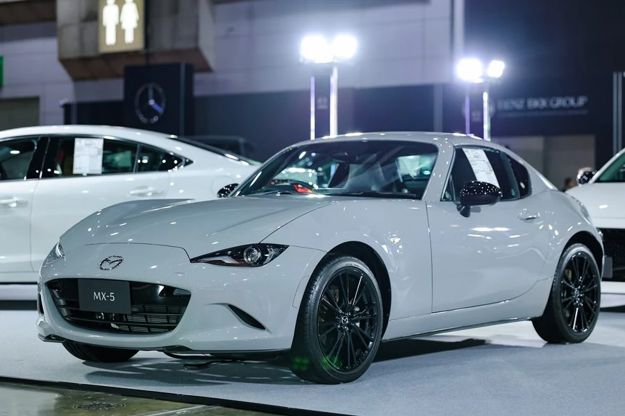 และ New Mazda MX-5 2.0 RF 6AT สีเทาแอโร เกรย์ แบรนด์ไอคอนยอดนิยมรุ่นใหม่ล่าสุด เจ้าของรถยนต์ขับสนุกที่สุดในโลก สร้างสถิติเป็นรถสปอร์ตโรดสเตอร์ที่ขายดีที่สุดในโลกกว่า 1,200,000 คัน โดยรถรุ่นนี้มาพร้อม DSC-TRACK ซึ่งเป็นระบบควบคุมเสถียรภาพและการทรงตัวของรถ (Dynamic Stability Control: DSC) ใหม่ เพื่อช่วยให้ผู้ขับขี่ควบคุมรถได้เหมือนกับการขับรถแข่ง มาพร้อมข้อเสนอ ดอกเบี้ย 2.49% ฟรีประกันภัยชั้นหนึ่ง Mazda Premium Insurance 1 ปี และฟรีโปรแกรมคุ้มครองและดูแลรถ 5 ปี Mazda Ultimate Service (MUS) ราคาจำหน่าย 3,029,000 บาท