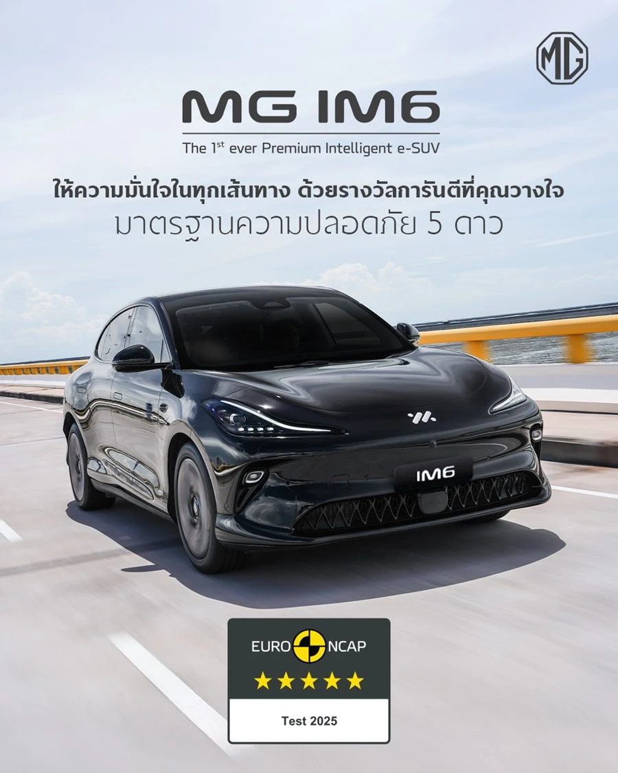 บริษัท เอสเอไอซี มอเตอร์ – ซีพี จำกัด และ บริษัท เอ็มจี เซลส์ (ประเทศไทย) จำกัด ผู้ผลิตและผู้จำหน่ายรถยนต์เอ็มจีในประเทศไทย สะท้อนความมุ่งมั่นในการพัฒนายนตรกรรมยานยนต์ไทยให้ทัดเทียมกับอุตสาหกรรมยานยนต์โลก ด้วยการผลิตและจำหน่ายรถยนต์ที่มีมาตรฐานสากลในระดับสากล ล่าสุดกับ NEW MG IM6 รถ e-SUV อัจฉริยะ ได้สร้างความเคลื่อนไหวครั้งสำคัญด้วยการรับรองมาตรฐานความปลอดภัยระดับ 5 ดาวสูงสุดจาก Euro NCAP ซึ่งผลคะแนนดังกล่าวมาจากการประเมินผลการทดสอบอย่างครอบคลุมในทุกมิติ โดยองค์กรอิสระที่ได้รับการยอมรับระดับโลก