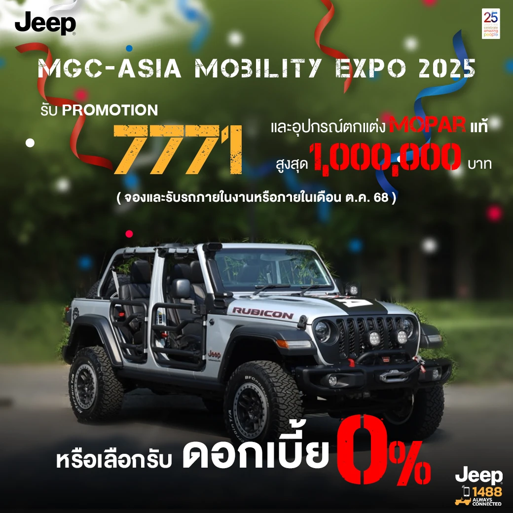 • รับโปรโมชั่น 7771 และอุปกรณ์ตกแต่ง Mopar แท้ สูงสุดมูลค่า 1,000,000 บาท* หรือ ดอกเบี้ย 0% พร้อมสัมผัสประสบการณ์ใหม่กับกิจกรรม Jeep Matcha Experience Brew Your Freedom*