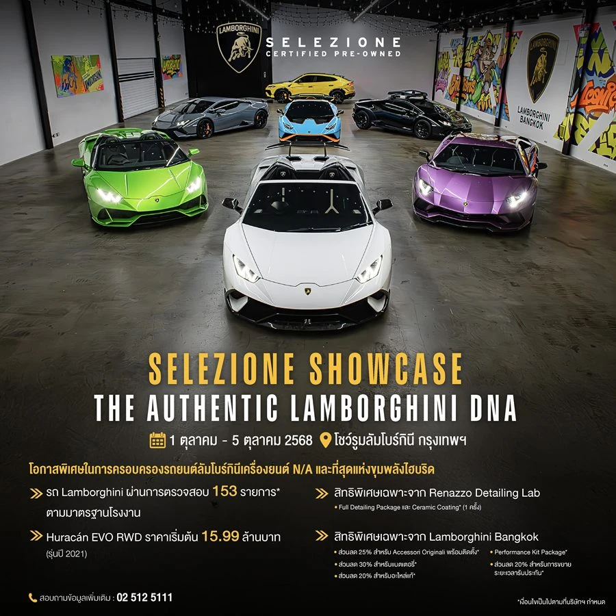 สำหรับแฟนพันธุ์แท้ค่ายวัวกระทิงดุเตรียมพบกับรถลัมโบร์กินีหลากหลายรุ่น อาทิ Aventador Ultimae, Huracan STO, Huracan Evo, Huracan Tecnica และ Urus Performante ระหว่างวันที่ 1-5 ตุลาคม 2568 ณ โชว์รูมเรนาสโซ มอเตอร์ ถนนวิภาวดีรังสิต