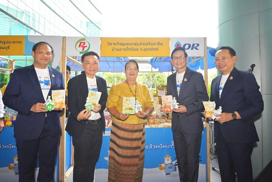 กระทรวงพลังงาน เดินหน้าหนุนเศรษฐกิจฐานรากเต็มกำลัง จับมือ 5 บริษัทผู้ค้าน้ำมันชั้นนำของไทย ได้แก่ PTG, PTTOR, เชลล์, คาลเท็กซ์ และซัสโก้ เปิดตัว "โครงการส่งเสริมการจำหน่ายผลิตภัณฑ์ชุมชน ลดใช้พลังงาน" พร้อมแคมเปญสร้างสรรค์ "กินพี่...แล้วหมีหนาว" เพื่อผลักดันสินค้าชุมชนคุณภาพที่ผลิตด้วยพลังงานสะอาดและเป็นมิตรต่อสิ่งแวดล้อม สู่เครือข่ายสถานีบริการน้ำมันทั่วประเทศ โดยตั้งเป้าสร้างรายได้ให้ชุมชน ควบคู่กับการลดการใช้พลังงาน และมุ่งสู่การสร้างสังคมคาร์บอนต่ำอย่างยั่งยืน