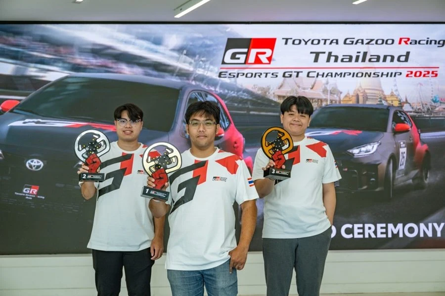บริษัท โตโยต้า มอเตอร์ ประเทศไทย จำกัด ขอแสดงความยินดีกับ ธนภัทร พวงพัฒน์ – ไชยภัทร ลิปิกรโกศล – ไหมจักรี อารีกิจเสรี 3 นักแข่งอีสปอร์ตชาวไทย ผู้คว้าชัยรอบคัดเลือกระดับประเทศ ในการแข่งขัน TOYOTA GAZOO RACING THAILAND ESPORT GT CHAMPIONSHIP 2025 บนเกม Gran Turismo 7 เมื่อวันที่ 24 กันยายน 2568 พร้อมสิทธิ์ตัวแทนประเทศไทยเข้าร่วมชิงแชมป์ระดับเอเชีย รายการ TOYOTA GAZOO RACING ASIA ESPORT GT CHAMPIONSHIP 2025 ที่จะจัดขึ้น ณ Toyota Alive บางนา ระหว่างวันที่ 22 – 23 พฤศจิกายน 2568