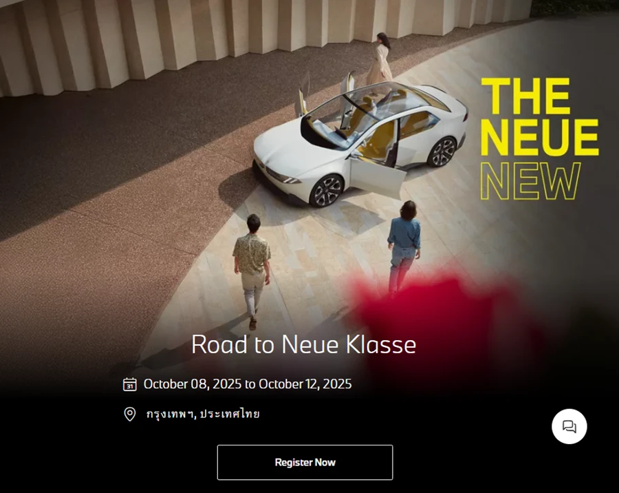 บีเอ็มดับเบิลยู ประเทศไทย พร้อมก้าวสู่ยุคใหม่ของโลกยานยนต์ด้วยวิสัยทัศน์แห่งอนาคตที่พร้อมให้ชาวไทยได้สัมผัสถึงกรุงเทพฯ กับการเผยโฉม BMW Vision Neue Klasse ยนตรกรรมต้นแบบสุดล้ำที่สะท้อนแนวคิดของนวัตกรรมการขับขี่ที่ชาญฉลาดและยั่งยืน โดยคำนึงถึงผู้ขับขี่เป็นศูนย์กลาง สำหรับผู้สนใจสามารถเข้าร่วมสัมผัสก้าวแรกสู่ยุคใหม่ของบีเอ็มดับเบิลยูได้ในงาน BMW Road to Neue Klasse : The Neue New ที่จัดขึ้น ณ เซ็นทรัล เอ็มบาสซี ในวันที่ 8-12 ตุลาคม 2568 นี้