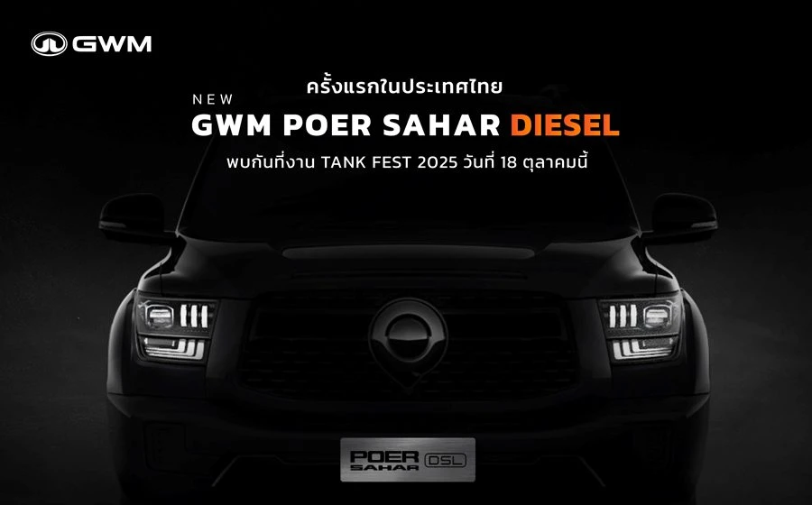 GWM (Thailand) ยกระดับสู่การเป็นแบรนด์รถยนต์ที่มีผลิตภัณฑ์ครอบคลุมทุกประเภทพลังงานที่ตอบสนองความต้องการของผู้ใช้งานทั่วทุกมุมโลก ด้วยแนวคิด ครอบคลุมทุกการใช้งาน (All Scenarios) ด้วยผลิตภัณฑ์ที่ครอบคลุมทุกพลังงาน (All Powertrains) สู่การตอบสนองทุกกลุ่มผู้ใช้งานอย่างแท้จริง (All Users) ล่าสุด เตรียมสร้างความตื่นเต้นให้กับแฟน ๆ สายลุยและสายปรับแต่งรถ สำหรับผู้ที่กำลังมองหารถกระบะพรีเมียมทางเลือกใหม่ด้วยขุมพลังดีเซล 2.4T กับการเผยโฉม NEW GWM POER SAHAR DIESEL ครั้งแรกในประเทศไทย พร้อมแนวทางการตกแต่งใน 3 สไตล์เพื่อตอบโจทย์ไลฟ์สไตล์ที่หลากหลาย พลิกโฉมวงการกระบะในไทยด้วยการมอบความสะดวกสบายระดับพรีเมียม และความล้ำหน้าทางเทคโนโลยีเพื่อประสิทธิภาพการขับขี่ที่เกินคาด พร้อมเผยให้คนไทยได้ยลโฉมและสัมผัสตัวจริงในงาน TANK FEST 2025 and TOP RANK TANK MOD ระหว่างวันที่ 18 - 19 ตุลาคม 2568 นี้ ที่ ESC PARK รังสิต จังหวัดปทุมธานี ตั้งแต่เวลา 10.00 น. เป็นต้นไป