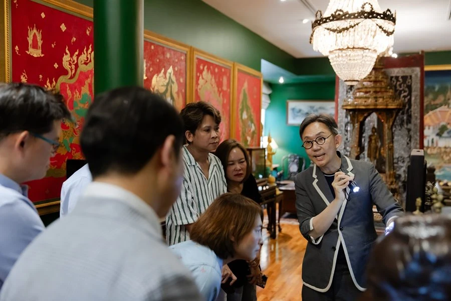 ทริป The Mobility of Art Experience ได้เชิญเจ้าของรถ GEELY EX5 จำนวน 35 ท่าน ร่วมเดินทางสู่ แรงบันดาลใจจากงานศิลปะ ผ่านหลากหลายกิจกรรม โดยไฮไลท์สำคัญคือ Exclusive Art Tour โดย นายเสริมคุณ คุณาวงศ์ ได้พาผู้เข้าร่วมสัมผัสเสน่ห์ศิลปะใน 3 โซนหลักของบ้านพิพิธภัณฑ์ เริ่มจาก The Residence บ้านพำนักที่ผสานศิลปะเข้ากับวิถีชีวิตประจำวัน ทั้งห้องอ่านหนังสือตกแต่งสไตล์ไทย ห้องน้ำชาที่จัดแสดงงานประณีตศิลป์หลายแขนง และ ห้องจักรพันธุ์ ซึ่งรวบรวมผลงานของ อาจารย์จักรพันธุ์ โปษยกฤต และศิลปินไทยอีกมากมาย ต่อด้วย The Garden of Life สวนแห่งชีวิตที่รายล้อมด้วยงานประติมากรรมนับสิบชิ้น และปิดท้ายที่ The Cubic Building อาคารทรงเรขาคณิต 5 ชั้น อันเป็นพื้นที่จัดแสดงศิลปะร่วมสมัย ทั้ง 3 โซนยังถูกใช้เป็นพื้นที่จัดแสดง GEELY EX5 ในกิจกรรมครั้งนี้ สะท้อนการผสานระหว่างศิลปะและยนตรกรรมที่เรียบง่าย ทันสมัย และสง่างาม อันเป็นเอกลักษณ์ของแบรนด์ GEELY ได้อย่างลงตัว นอกจากการเยี่ยมชมงานศิลปะแล้ว ผู้เข้าร่วมยังได้ดื่มด่ำกับเมนูคอร์สอาหารไทยที่รังสรรค์ขึ้นพิเศษสำหรับทริปนี้ ณ ห้อง Grand Garuda ซึ่งตกแต่งด้วยงานศิลป์ที่ถอดพิมพ์จากผลงานของ ศาสตราจารย์ศิลป์ พีระศรี และไม้แกะสลักของ อาจารย์ถวัลย์ ดัชนี เติมเต็มบรรยากาศการเดินทางครั้งนี้ด้วยเสน่ห์ของงานศิลปะในทุกย่างก้าว