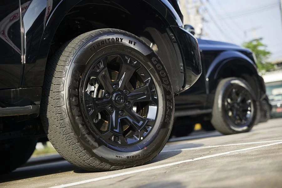 - ล้ออัลลอยขนาด 18 นิ้วสีดำ ขนาดยาง 265/60 R18 เพิ่มดีกรีความสปอร์ต เท่ให้กับดีไซน์ภายนอกของตัวรถได้เป็นอยางดี พร้อมยางอะไหล่ขนาดเท่าจริงใต้ท้องรถ