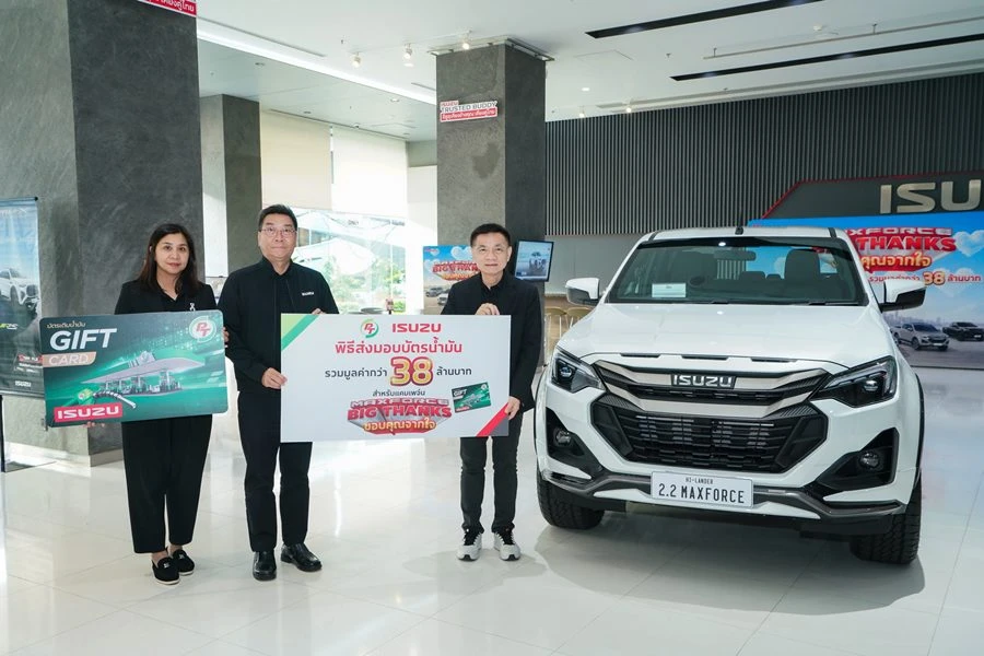 แคมเปญ MAXFORCE BIG THANKS ขอบคุณจากใจ สำหรับผู้ที่ซื้อ และรับรถอีซูซุดีแมคซ์ หรือรถยนต์นั่งอเนกประสงค์มิว-เอ็กซ์ ทุกรุ่น จากโชว์รูมอีซูซุทั่วประเทศ ระหว่างวันที่ 25 ตุลาคม – 30 ธันวาคม 2568 จะได้รับสิทธิ์ลุ้นบัตรเติมน้ำมัน PT รวม 1,907 รางวัล มูลค่ารวมกว่า 38,700,900 บาท โดยมีการจับรางวัลทั้งหมด 9 ครั้ง และประกาศผลผ่านทางเฟซบุ๊กเพจ All-New ISUZU D-MAX และ All-New ISUZU MU-X รวมถึงช่องทางผู้จำหน่ายอีซูซุทั่วประเทศ