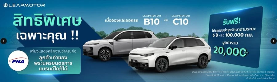 - สิทธิพิเศษสำหรับ ลูกค้าเก่าที่เคยออกรถยนต์จากทุกแบรนด์ภายใต้กลุ่มพระนครยนตรการ เมื่อจองและออกรถ Leapmotor C10 หรือ Leapmotor B10