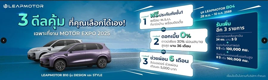 - เพียงจอง ภายในงาน Motor Expo 2025 หรือ ที่โชว์รูม Leapmotor ใกล้บ้านท่าน