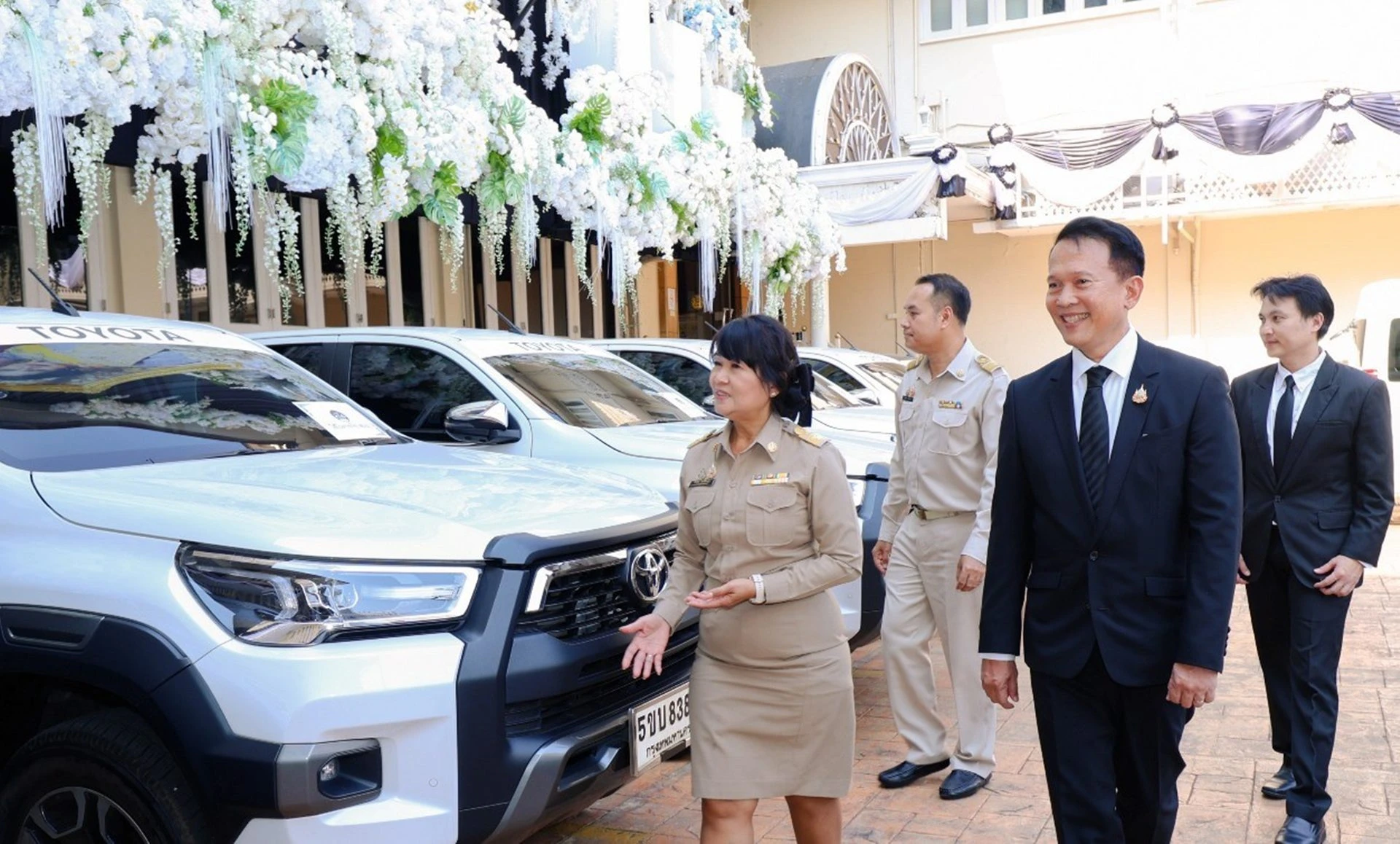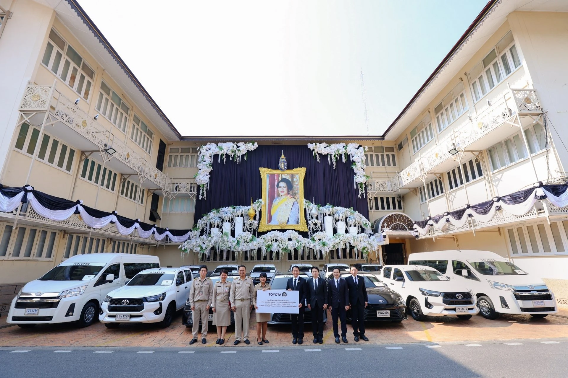 นายสุรภูมิ อุดมวงศ์ รองกรรมการผู้จัดการใหญ่ บริษัท โตโยต้า มอเตอร์ ประเทศไทย จำกัด ได้ส่งมอบรถยนต์โตโยต้า จำนวน 15 คัน พร้อมพนักงานขับรถ ให้แก่ สำนักงานปลัดสำนักนายกรัฐมนตรี เพื่อสนับสนุนภารกิจด้านการเดินทางของจิตอาสาและเจ้าหน้าที่ รวมถึงการใช้ในงานเตรียมการและการจัดงานพระราชพิธีพระบรมศพ สมเด็จพระนางเจ้าสิริกิติ์ พระบรมราชินีนาถ พระบรมราชชนนีพันปีหลวง โดยมี นางชื่นชีวัน ลิมป์ธีระกุล รองปลัดสำนักนายกรัฐมนตรี เป็นผู้แทนรับมอบ