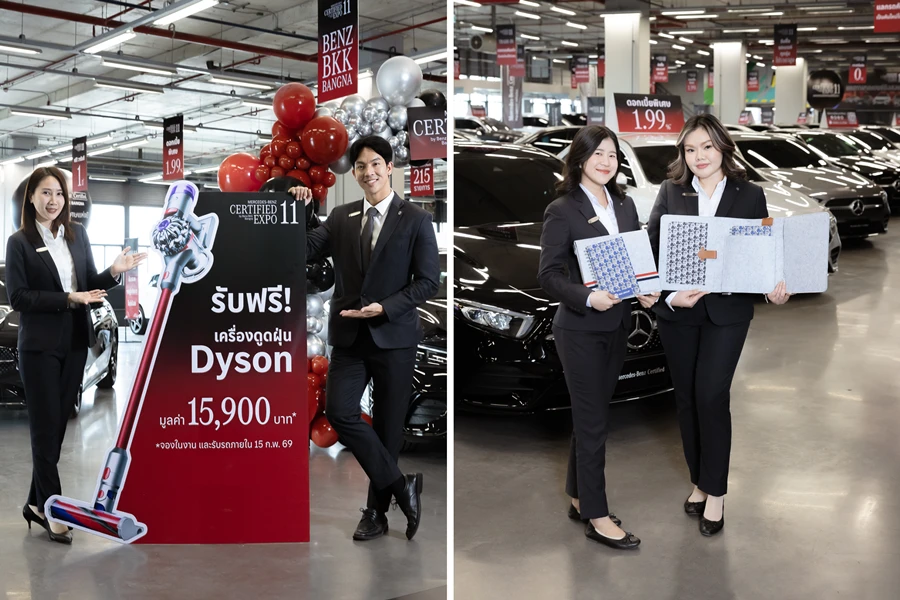 Benz BKK Bangna ยังมอบข้อเสนอพิเศษเฉพาะภายในงาน เพื่อให้ลูกค้าเป็นเจ้าของรถเบนซ์ได้ง่ายยิ่งขึ้น ด้วยราคาเริ่มต้นเพียง 799,000 บาท พร้อมดอกเบี้ยพิเศษ 1.99% และข้อเสนอ ดาวน์ 0%* รวมถึงสิทธิพิเศษสำหรับลูกค้าที่จองรถภายในงาน รับฟรี!! เครื่องดูดฝุ่น Dyson V8 Slim™ Fluffy มูลค่า 15,900 บาท* และผู้ที่ลงทะเบียนร่วมงานยังจะได้รับ BKK Journey Set ของที่ระลึกสุดเอ็กซ์คลูซีฟจาก Benz BKK Bangna อีกด้วย นอกจากนี้ ภายในงานยังครบวงจรด้วยบริการ Trade-in รับซื้อ–แลกเปลี่ยนรถ พร้อมประเมินราคาอย่างรวดเร็ว ปลอดภัย และรับเงินได้ภายใน 1 ชั่วโมง ตอบโจทย์ทุกความต้องการด้านรถยนต์ในที่เดียว ทั้งซื้อ–ขาย–ซ่อม ครบจบที่ Benz BKK Bangna
