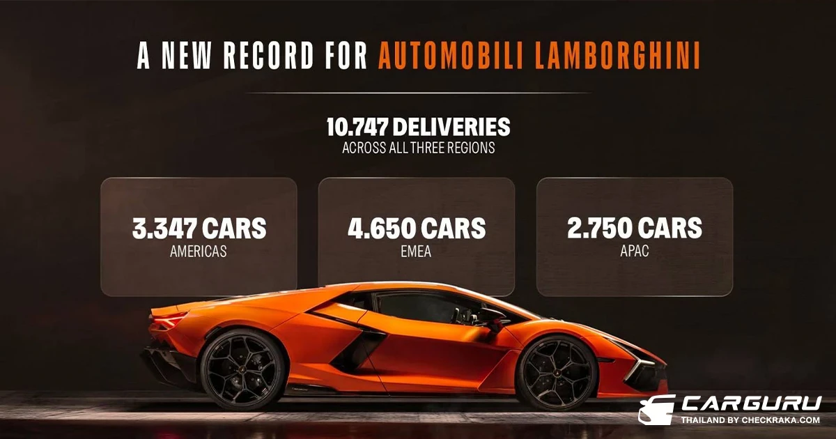 ผลประกอบการปี 2568 ยังชี้ให้เห็นถึงตลาดที่แข็งแกร่งใน 3 ภูมิภาคหลัก โดยภูมิภาคยุโรป ตะวันออกกลาง และแอฟริกา (EMEA) ยังคงเป็นตลาดอันดับหนึ่งของออโตโมบิลิ ลัมโบร์กินี ด้วยยอดส่งมอบถึง 4,650 คัน ตามมาด้วยทวีปอเมริกา 3,347 คัน และภูมิภาคเอเชียแปซิฟิก (APAC) 2,750 คัน