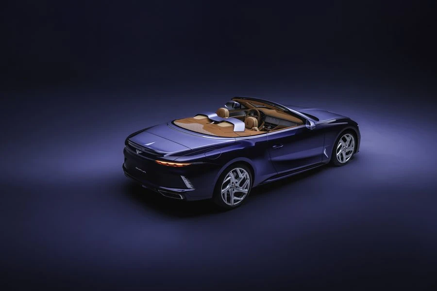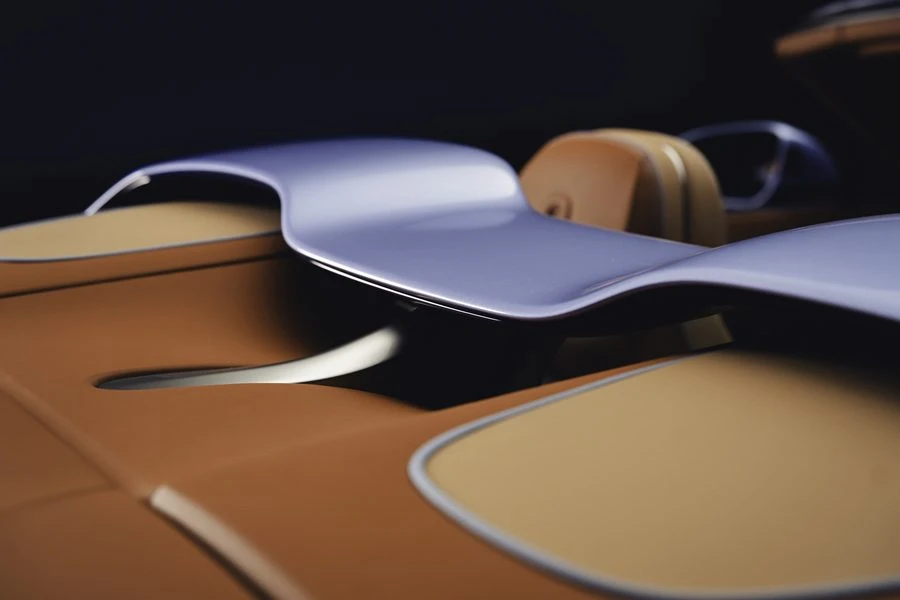 โดยเมื่อพับเก็บแล้วจะเผยให้เห็นฝาครอบบริเวณด้านหลังเบาะโดยสาร (Airbridge) ที่มีสีเดียวกัน รายละเอียดภายนอกยังมากับเส้นสายบนฝากระโปรงหน้าในเฉดสี Midnight Breslow Blue ที่เข้ากันกับเฉดสีตัวถังด้านข้าง และเฉดสีของซี่ล้ออัลลอยด์และกระจกมองข้าง พร้อมด้วยการตกแต่งปลายท่อไอเสียไทเทเนียมขัดเงาและกระจังหน้าสีเงินแบบเงา