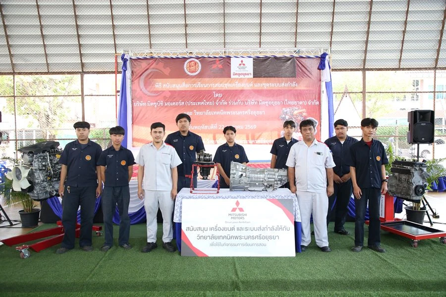 บริษัท มิตซูบิชิ มอเตอร์ส (ประเทศไทย) จำกัด เดินหน้าสนับสนุนการศึกษา และส่งเสริมการพัฒนาทักษะเชิงช่างอย่างต่อเนื่อง เป็นปีที่ 11 ตอกย้ำความมุ่งมั่นของบริษัทฯ ในการยกระดับมาตรฐานการศึกษาของประเทศไทย และส่งเสริมการเรียนรู้โดยผ่านการลงมือปฏิบัติจริง ร่วมกับผู้จำหน่าย บริษัท มิตซูอยุธยา (ไทยธาดา) จำกัด มอบเครื่องยนต์และชุดส่งกำลัง ให้แก่ วิทยาลัยเทคนิคพระนครศรีอยุธยา เพื่อใช้เป็นสื่อการเรียนการสอน มุ่งเปิดโอกาสให้นักศึกษาได้สัมผัสการเรียนรู้เทคโนโลยี และองค์ความรู้ทางเทคนิคที่ทันสมัย อันนำไปสู่การเพิ่มโอกาสสู่ความสำเร็จในสายงานและเป็นรากฐานสำคัญในการเติบโตในอุตสาหกรรมยานยนต์อย่างยั่งยืน