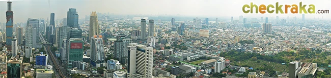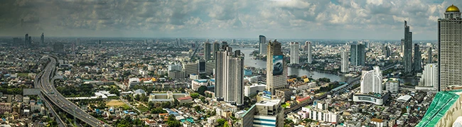 ภาพมุมสูงเมื่อมองเข้ามาฝั่งในเมือง เห็นตึกสูงๆ ในย่านสาทรและสีลม