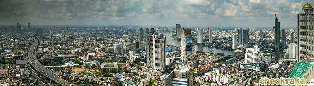 วิวแม่น้ำเจ้าพระยาโดยมีตึกสูงและ Asiatique อยู่ริมแม่น้ำ ซึ่งจากการสำรวจของ Bkkcitismart