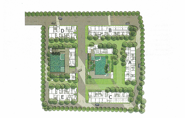 Master Plan แสดงผังทั้ง 5 อาคารสำหรับพักอาศัย ของโครงการ The Sky Sukhumvit