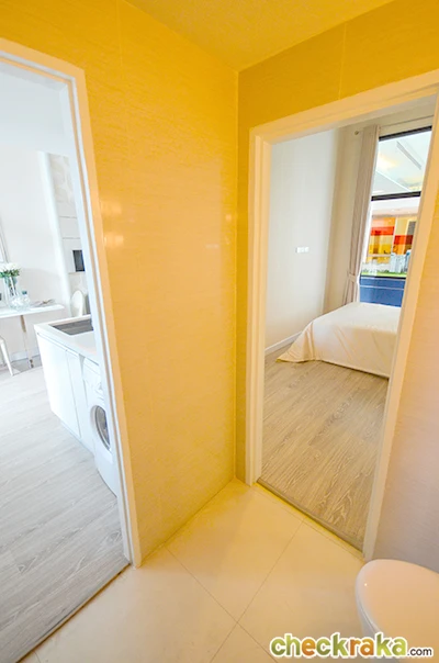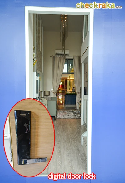 เรามาเริ่มชมกันเลยค่ะ ด้านหน้าตัวห้องจริงจะมีประตูและติดตั้ง Digital Door Lock มาให้ เพื่อความปลอดภัยค่ะ