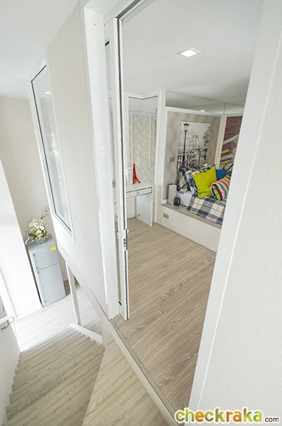 เข้ามาในห้องขวามือจะเป็นบันไดขึ้นไปห้องนอนชั้นบนและถัดไปขวามือก็จะเป็นทางเข้าไปห้องน้ำ ผ่านเคาน์เตอร์ครัวค่ะ