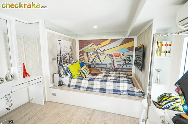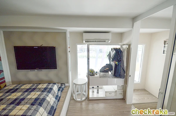 ปลายเตียงสามารถติดโทรทัศน์แบบแขวนผนังได้ และยังมีพื้นที่เล็กๆ ให้วางของหรือวางตู้เสื้อผ้าด้วยค่ะ
