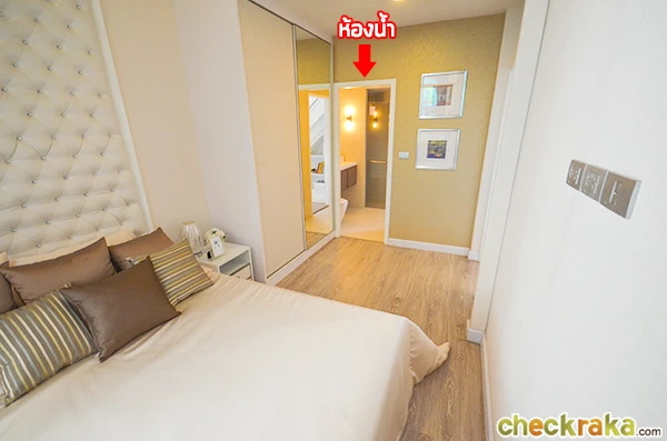 และห้องนี้ก็ไม่ต้องซื้อเตียงนอนนะคะ เพราะโครงการยกพื้นขึ้นมาให้สำหรับวางที่นอนขนาด 3.5 ฟุตแล้ว