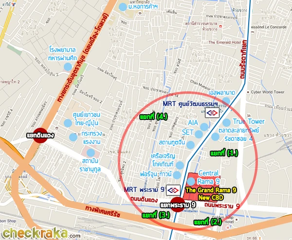 ภาพแจกแจงรายละเอียดโดยรวมบริเวณ 4 ฝั่งของแยกรัชดา-พระราม 9