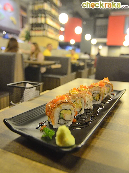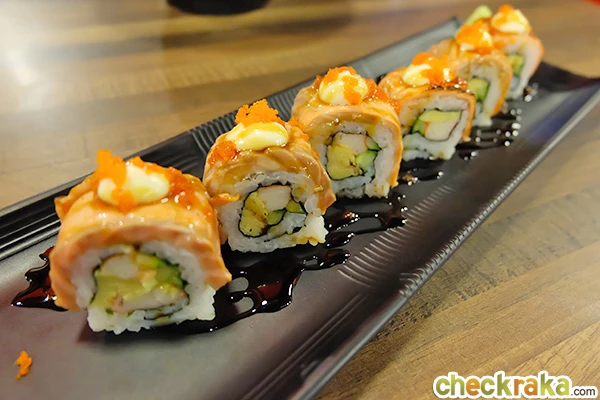"ข้าวห่อสาหร่ายหน้าปลาแซลมอนย่าง (Aburi Salmon Roll)"