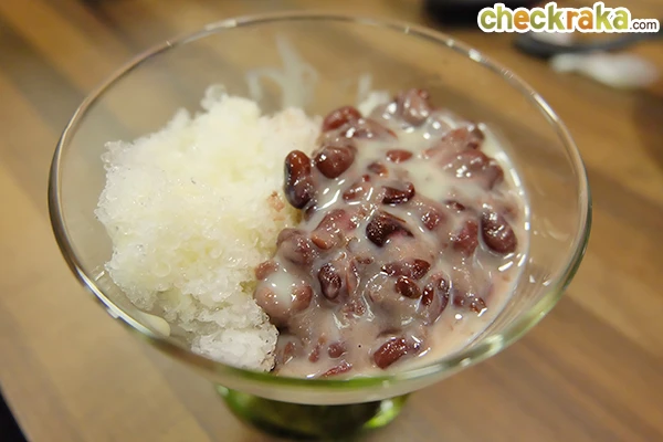 จบของคาวแล้วตบท้ายด้วยของหวาน "น้ำแข็งใสถั่วแดง" น้ำแข็งนุ่มๆ กับถั่วแดงหอมๆ