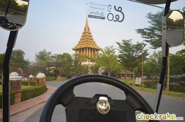 เที่ยวกันมา 3 ที่ แล้วตอนนี้ เวลา 4 โมงเย็น พวกเราเพิ่งเดินทางมาถึงเมืองโบราณค่ะ จริงๆ แล้วค่าเข้าชมชาวไทยที่เข้าชมตั้งแต่เวลา เวลา 09.00-16.00 น. ผู้ใหญ่ ท่านละ 350 บาท เด็ก ท่านละ 175 บาท หากนำรถยนต์ส่วนบุคคล/รถตู้ เข้าไป (ราคาไม่รวมคนขับ) คันละ 400 บาท (ราคานี้รวมรถราง จักรยาน และนั่งเรือแล้ว) แต่เราเข้าไปตอน 4 โมง ค่าเข้าชมลดลงครึ่งหนึ่ง เหลือคนละ 175 บาท ส่วนวิธีการที่เราจะเข้าไปชมนั้นเราก็คิดอยู่พักนึง เพราะจะมีจักรยานให้ใช้ฟรีคนละ 1 คัน แต่ดูจากแผนที่แล้วไม่น่าจะปั่นได้ไกล ถ้าเอารถเข้าไปได้ค่านำรถเข้าไปก็ 200 บาท แต่ก็คงแวะแต่ละที่ได้ไม่สะดวก ดังนั้นเราจึงเลือกขับรถกอล์ฟกันค่ะ ราคา 2 ที่นั่งอยู่ที่ 150 บาท