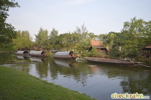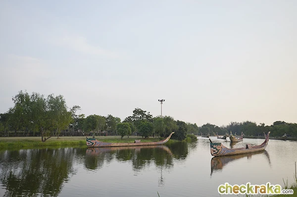 จำลองกระบวนพยุหยาตราชลมารค หากใครต้องการรับฟังรายละเอียดแต่ละสถานที่สามารถขึ้นรถรางตามรอบที่กำหนดและฟังจากวิทยาการได้ หรือถ้าใครเลือกจักรยานหรือรถกอล์ฟ สามารถขอเครื่องให้รายละเอียดจากตอนที่ซื้อบัตรได้เลยค่ะ