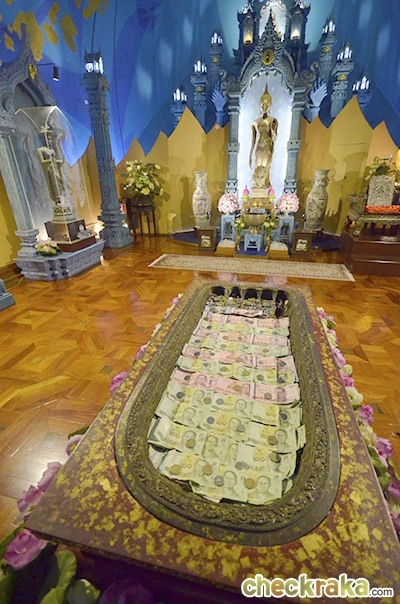 ภายในตกแต่งด้วยลวดลายปูนปั้นประดับด้วยเครื่องเบญจรงค์จากฝีมือของช่างชาวเพชรบุรี สวยงามมากจริงๆ ค่ะ