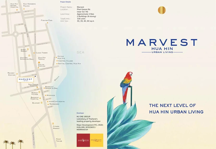 มาพบคอนโดหัวหิน สไตล์ Modern Coastal กับ Marvest หัวหิน คอนโดตากอากาศสุดหรูที่ตกแต่งอย่างพิถีพิถันด้วยวัสดุคุณภาพ พรีเมียม ทำเลใจกลางเมืองหัวหิน มาพร้อมสระว่ายน้ำขนาดใหญ่ ที่จะทำให้สามารถดื่มด่ำไปกับบรรยากาศแห่งการพักผ่อน อีกทั้งยังใกล้ Lifestyle Hub แลนด์มาร์กยอดฮิตที่ครบครันในหัวหิน เป็นคอนโดอีกโครงการที่น่าสนใจไม่น้อยเลย