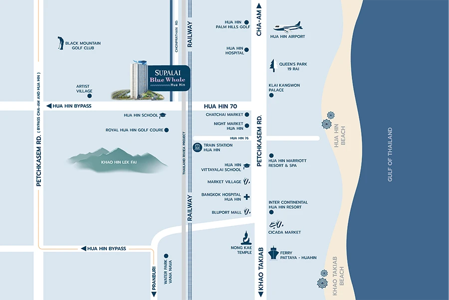 คอนโดแห่งแรกจากศุภาลัย "ศุภาลัย บลูเวล หัวหิน" บนทำเลใจกลางหัวหิน สุด Exclusive ที่จะสามารถชมวิวได้รอบๆ ทั้งวิวทะเล วิวภูเขา พร้อมรับลมธรรมชาติ และให้ความเป็นส่วนตัวกับทุกการพักผ่อน ที่มาพร้อมกับส่วนกลางจัดเต็มด้วย Lighthouse Park หรือสวนน้ำ สไตล์ Adventure Kids และ สระว่ายน้ำขนาดใหญ่ อีกทั้งคอนโดยังอยู่ใกล้แหล่งสิ่งอำนวยความสะดวกใจกลางหัวหิน