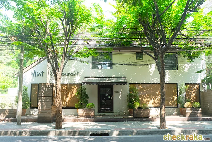 ร้านต่อไปที่จะมาไปชิมก็คือร้าน Mint บรรยากาศภายนอกร่มรื่น โดดเด่นด้วย Font เก๋ๆ ที่ชื่อร้าน