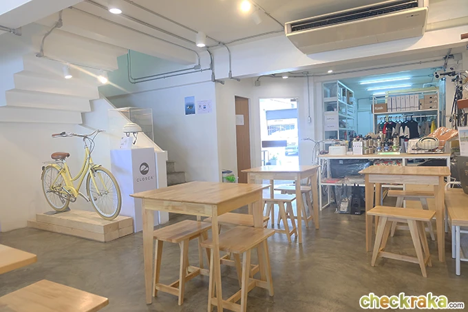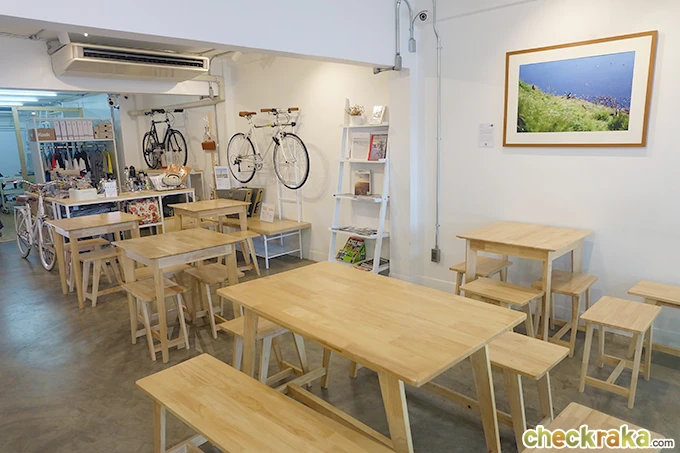 ภายในร้านมีจำหน่ายอุปกรณ์จักรยาน และสามารถมานั่งทำงาน นั่งคุยเล่น