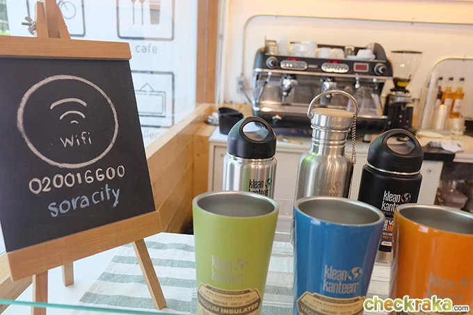 ที่นี่เป็นคาเฟ่สบายๆ ใช้โทนสีขาว สีไม้อ่อนๆ ในการตกแต่ง