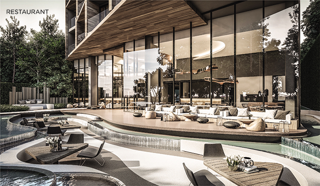 ล็อบบี้พร้อมด้วยลูกเล่นเส้นสายเลียนแบบธรรมชาติของโครงการ