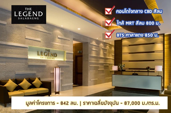เดอะ ลีเจ้นด์ ศาลาแดง (The Legend Saladaeng) มีจำนวน 75 ยูนิต ตั้งอยู่ในบริเวณใจกลางย่านธุรกิจสำคัญของสีลม และสาทร ใกล้รถไฟฟ้า BTS ศาลาแดง และรถไฟใต้ดิน MRT ลุมพินี รายล้อมไปด้วยแหล่งร้านอาหาร และศูนย์รวมความบันเทิงมากมายในย่านศาลาแดง (ดูรายละเอียดโครงการที่ www.raimonland.com/th/Ourbusiness/Residential/The_Legend_Saladang)