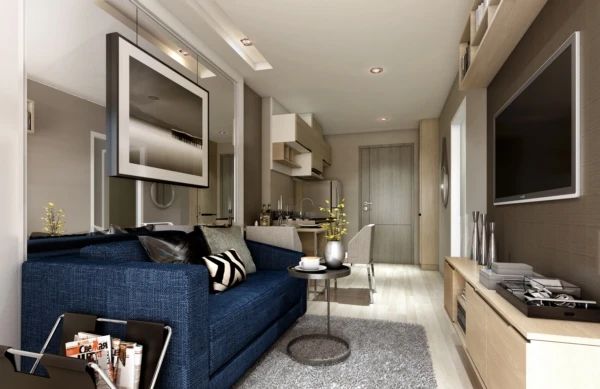 ภาพจำลองบรรยากาศภายในห้องบริเวณพื้นที่นั่งเล่น และพื้นที่รับประทานอาหาร