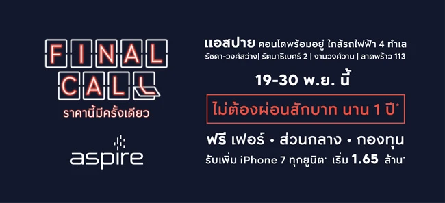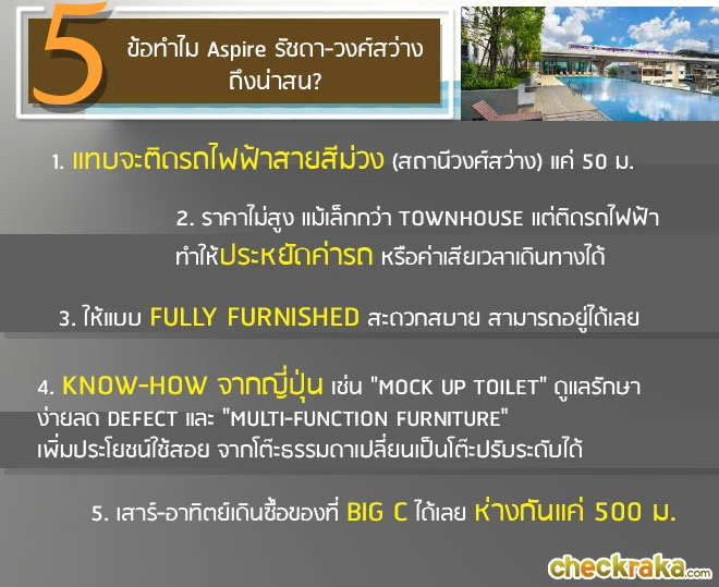 1) คอนโด Aspire รัชดา-วงศ์สว่าง (Ready-to-Move-in)