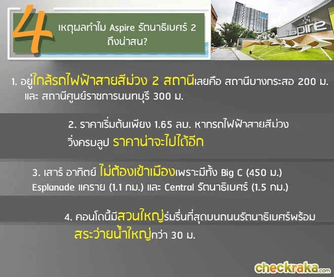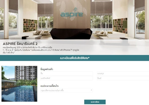 หากท่านสนใจโครงการ Aspire รัตนาธิเบศร์ 2 สามารถลงทะเบียนได้ที่ Link ด้านล่างนี้ค่ะ