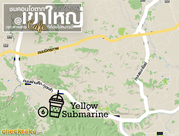 ชื่อร้านเขียนว่าเรือดำน้ำสีเหลืองแต่ร้านตกแต่งเป็นสีดำทั้งหมดดูเก๋ ดูเท่ ดูแปลก ไม่เบาทีเดียว แต่ละเมนูก็ครีเอทออกมาได้ไม่ซ้ำใคร ใครมาเขาใหญ่ต้องมาให้ได้นะคะ
