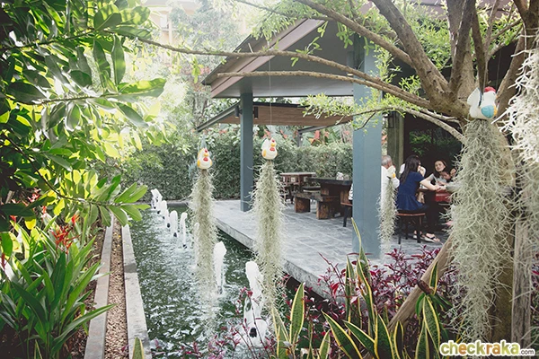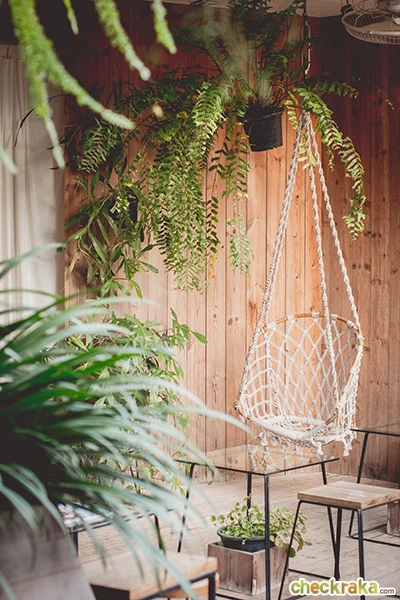 ผ่านตัวร้านเข้าไปด้านในจะเป็นโซน outdoor มีชิงช้าให้นั่งด้วย