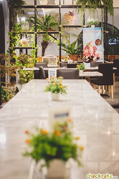 ภายในร้านตกแต่งคล้ายๆ กับ Glass House เรือนเพาะพันธุ์ต้นไม้ค่ะ