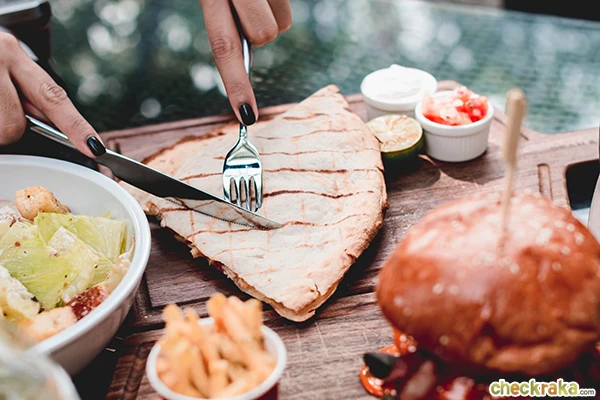 Flame Grilled Chicken Quesadilla แป้งบางกรอบ ด้านในเป็นไก่กับเครื่องเทศเบาๆ ค่ะ