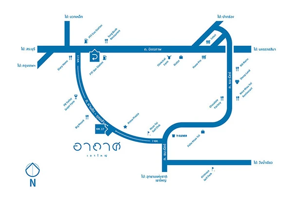 โครงการ "อากาศ เขาใหญ่" ตั้งอยู่บนถนนผ่านศึก-กุดคล้า กม.17 เราจะเริ่มจากกรุงเทพฯ โดยใช้ถนนมิตรภาพเป็นหลักค่ะ สังเกตร้าน "Diary Home" (ฝั่งขาเข้ากรุงเทพ) ไว้ให้ดีนะคะ จะอยู่ก่อนถึง "ฟาร์มโชคชัย" จากนั้นกลับรถแล้วเลี้ยวซ้ายถนนผ่านศึก-กุดคล้า ซึ่งร้าน Diary Home จะอยู่ปากทางเข้าถนนผ่านศึก-กุดคล้าพอดี ขับตรงมาเรื่อยๆ จนถึงกิโลเมตรที่ 17 จะสังเกตเห็นป้ายโครงการอากาศ เขาใหญ่ อยู่ทางขวามือ จากนั้นก็เลี้ยวขวาเข้ามาได้เลย (พิกัดโครงการอากาศ เขาใหญ่ 14.554294, 101.308662)